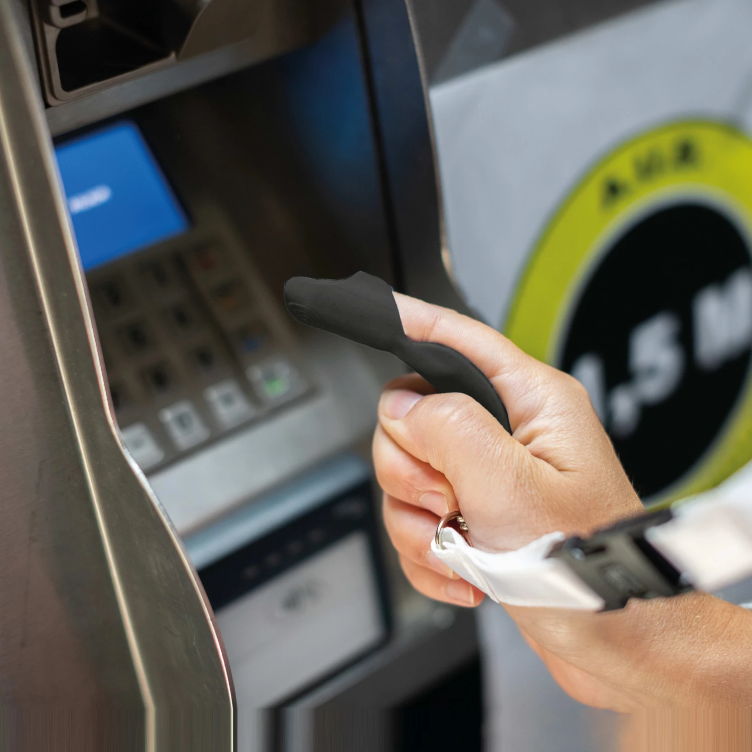 In unserem Alltag öffnen wir täglich Türen, drücken Knöpfe und Schalter oder nutzen Tastaturen wie an Bank- oder Fahrkartenautomaten. Alles Flächen, die von viele Menschen berührt werden und so zwangsläufig Bakterien und Viren übertragen. Mit unserem neuen hygienischen Fingerschutz »HI SAFE TOUCH lässt sich ein direkter Kontakt mit diesen Flächen vermeiden. Der Clip aus hautsympathischem Kunststoff wird einfach über den Zeigefinger gezogen und lässt sich anschließend leicht reinigen. Das Material ist leitfähig und so können mit HI SAFE TOUCH auch Touchscreens bedient werden. Der Fingerschutz kann am Schlüsselbund befestigt werden und ist so immer griffbereit.