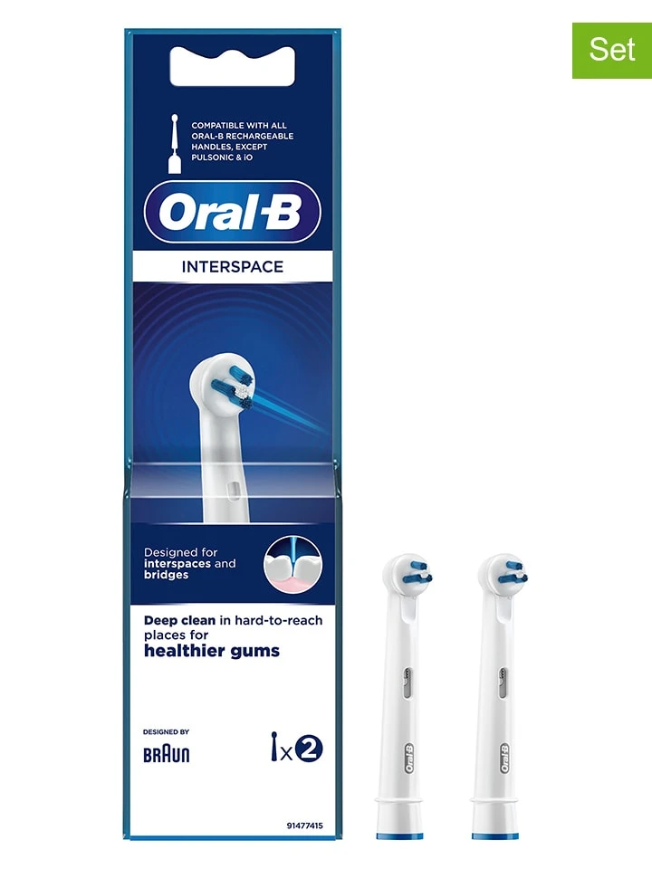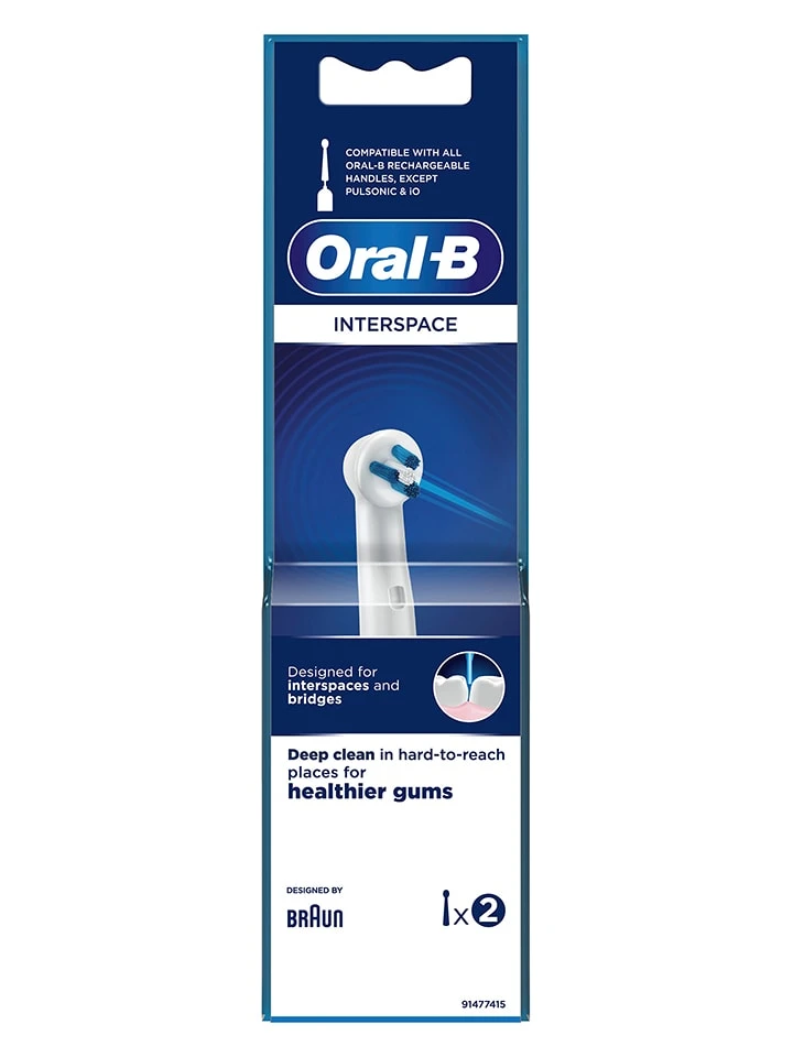 – Im Lieferumfang enthalten: 2 Oral-B Interspace Aufsteckbürsten (aus hygienischen Gründen einzeln verpackt)